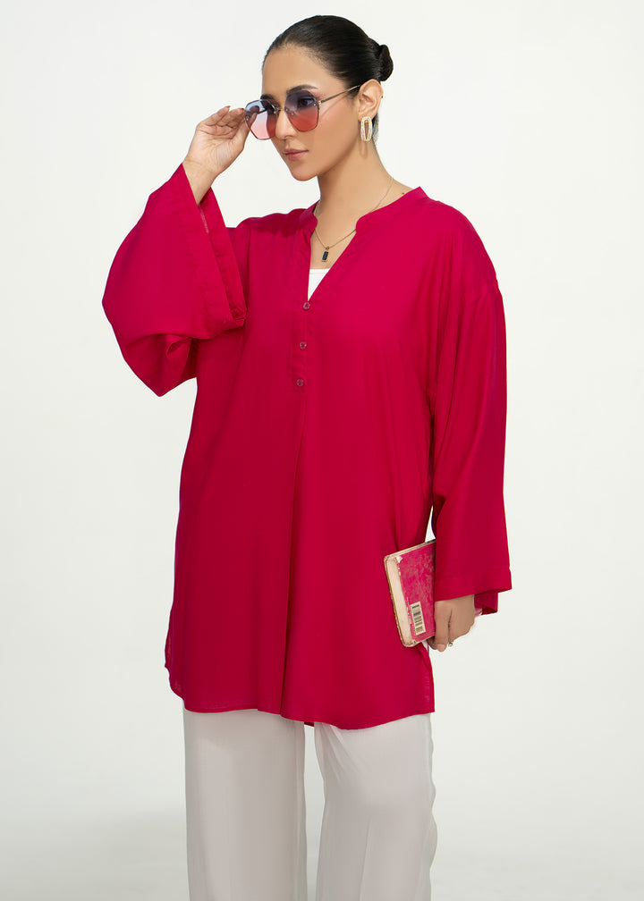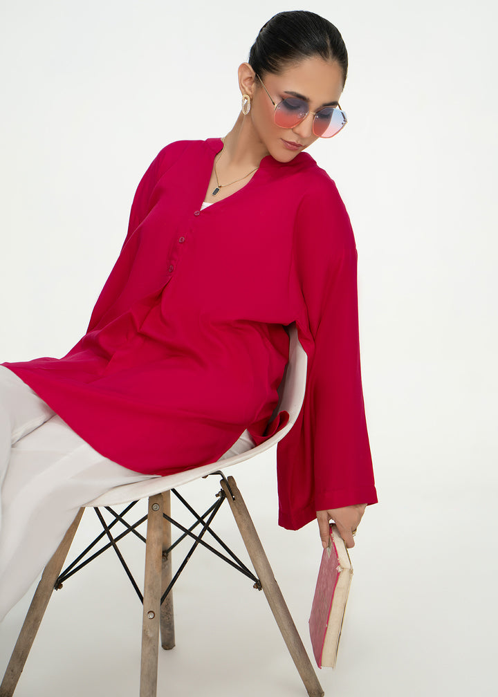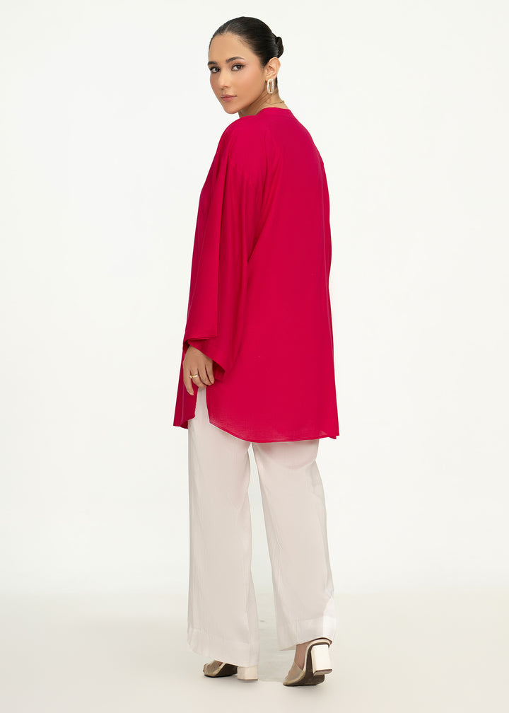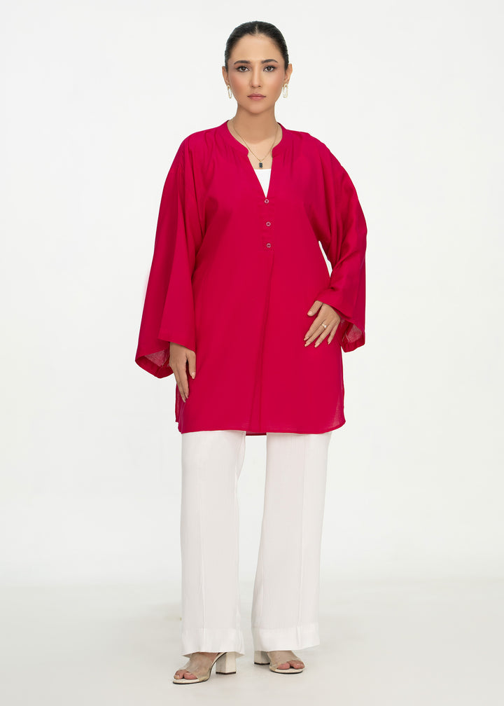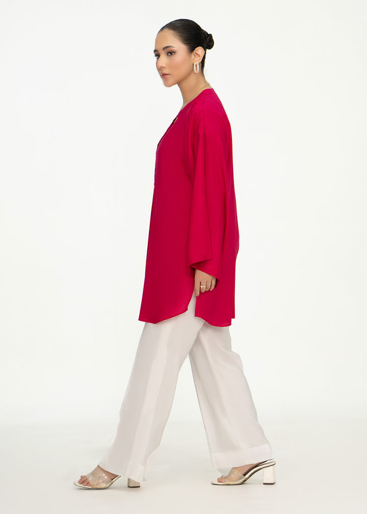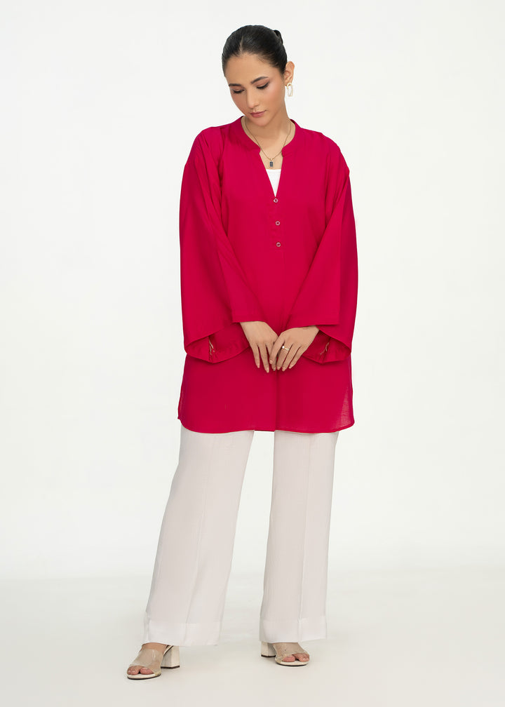 A soft pink short kurta that blends comfort with style. Designed with a mandarin collar, its lightweight Arabic lawn fabric moves with ease. Paired with slub linen trousers, it is perfect for a relaxed and refined ensemble.